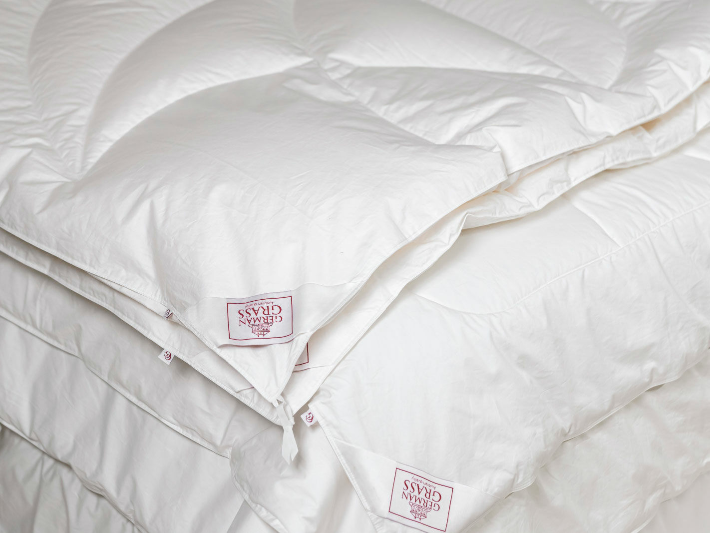Сочетание отборного белого гусиного пуха из северных регионов и нежного пуходержащего макосатина из длинноволокнистого египетского хлопка (Macosateen, TC 460) – безупречная классика жанра пуховых одеял. Уникальная технология создания стеганых одеял BOX- QUILTING®, разработанная и запатентованная специалистами German Grass, позволила создать стеганые одеяла ALLIANCE DOWN GRASS, не уступающие по параметрам кассетным и продлевающим их срок службы.