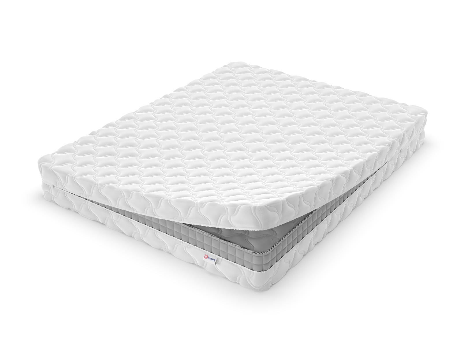 Защитный чехол на молнии, полностью закрывает матрас со всех сторон. Ткань - белый трикотаж люкс (стежка холкон 230г).