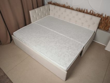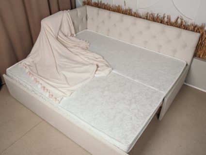 В комплектации с подъемным механизмом кровать имеет вместительный бельевой короб с двумя отделениями.