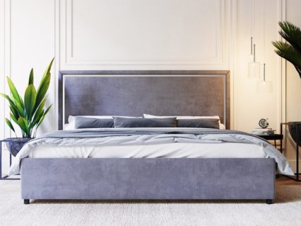 Спейс — кровать в современном стиле. Прямое мягкое изголовье украшено тонкой зеркальной вставкой по периметру.