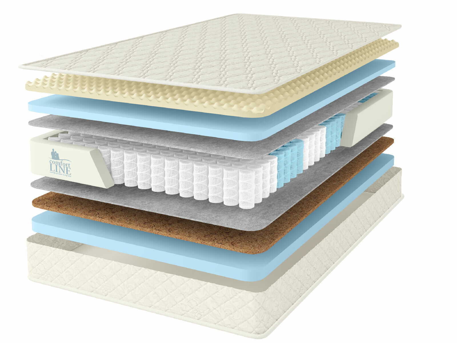 Кокосовое волокно с натуральным латексом придает жесткость, экологически чистый материал, который прекрасно вентилируется.