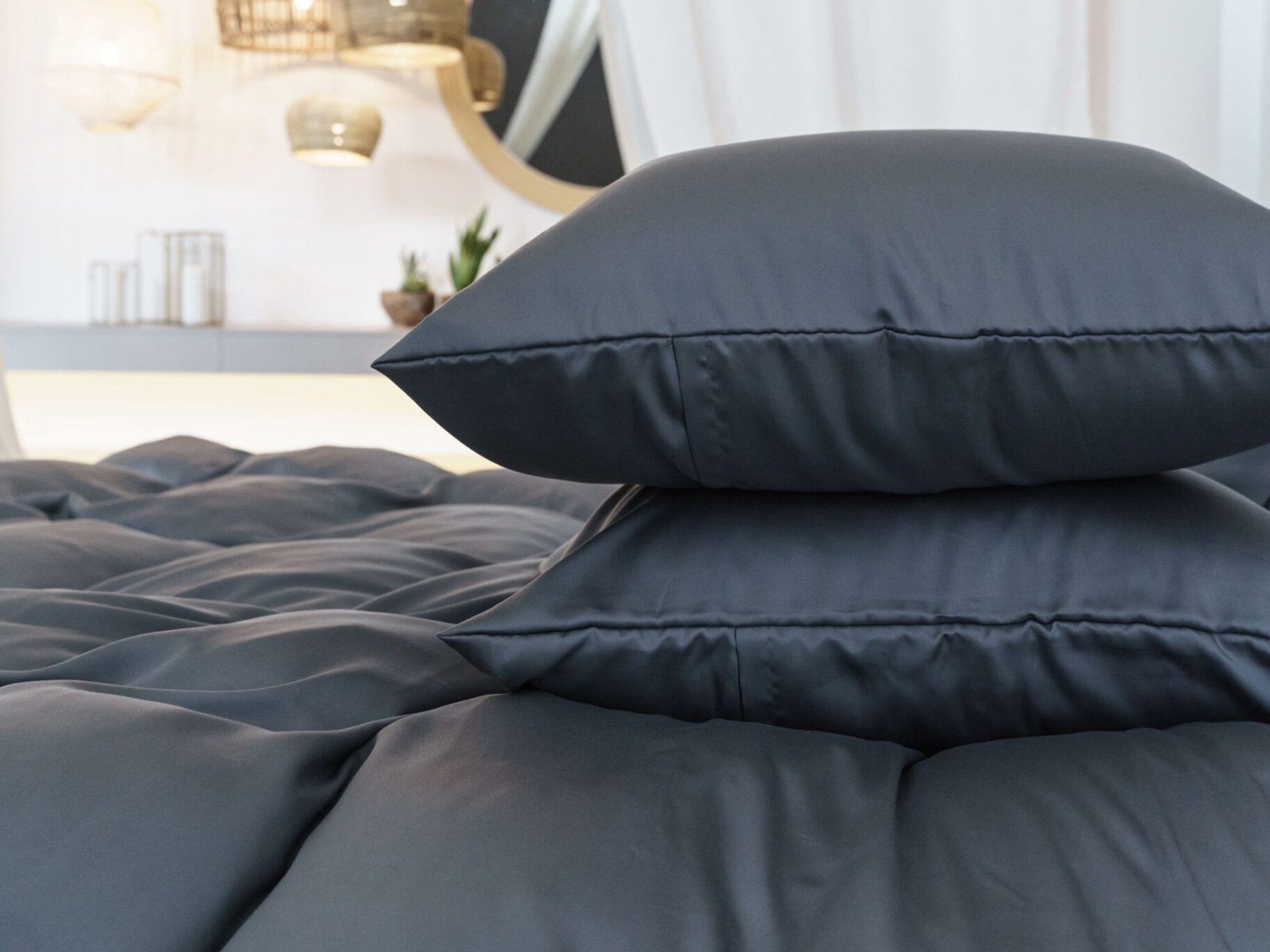 Постельное белье BRILLIANT CLASSICS от German Grass — это сочетание классического лаконичного кроя и изящных тканей сатинового плетения, имеющих благородный блеск, из-за которого линия и получила свое название. Созданная из гипоаллергенной пряжи из волокон TENCEL, плотная, но мягкая ткань обладает необыкновенной гладкостью и высокой гигроскопичностью, впитывая на 70% больше влаги, чем хлопковые сатины. Это свойство ткани, которую часто называют «вторым шелком» за ее тактильные свойства и внешний вид, позволяет пользователю не только ощутить повышенный комфорт во время сна, но также значительно снижает риск роста болезнетворных бактерий. Особенно хороши эти ткани (из TENCEL) в летнее время, так как высокая гигроскопичность создает «охлаждающий эффект».