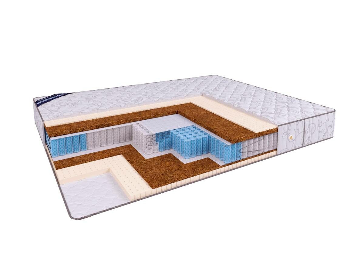 Матрас Hit Optima S1200 выполнен на основе пружинного блока "Мультипакет" (1200 пружин на спальное место), обеспечивающего оптимальную анатомическую поддержку спящему человеку. Пять различных зон жёсткости в пружинном блоке матраса соответствуют различным зонам тела человека, обеспечивая равномерное распределение его веса и позволяя позвоночнику находиться в естественном положении в течение всего периода сна. Благодаря своей несимметричной конструкции матрас имеет разную жёсткость сторон: он более жёсткий с той стороны, где поверхностным наполнителем является кокосовое волокно, и более мягкий - с обратной "латексной" стороны. Меняя сторону матраса, Вы самостоятельно сможете подобрать наиболее комфортную для себя степень жёсткости.