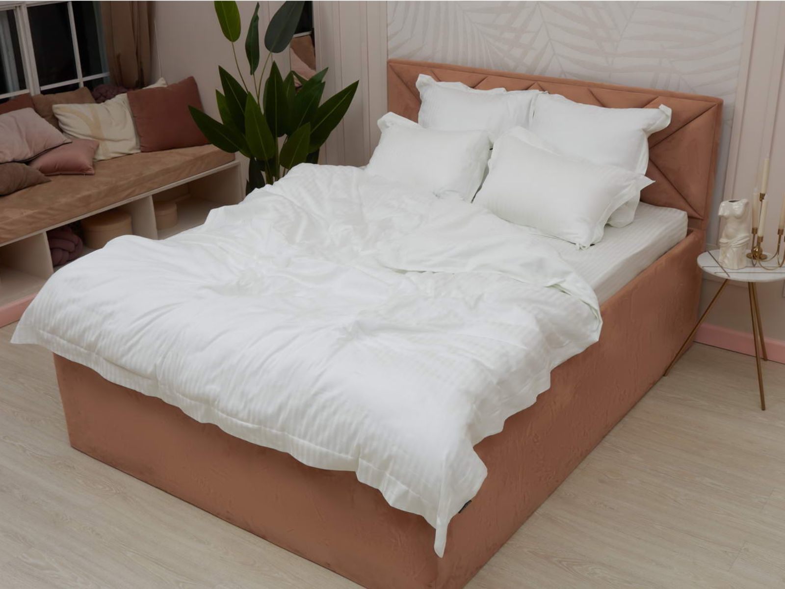 За изделиями легко ухаживать: стирка при температуре не выше 40 градусов с минимальным отжимом. Важно хорошо просушить! При правильном уходе комплект прослужит долгие годы, не потеряв форму и цвет.