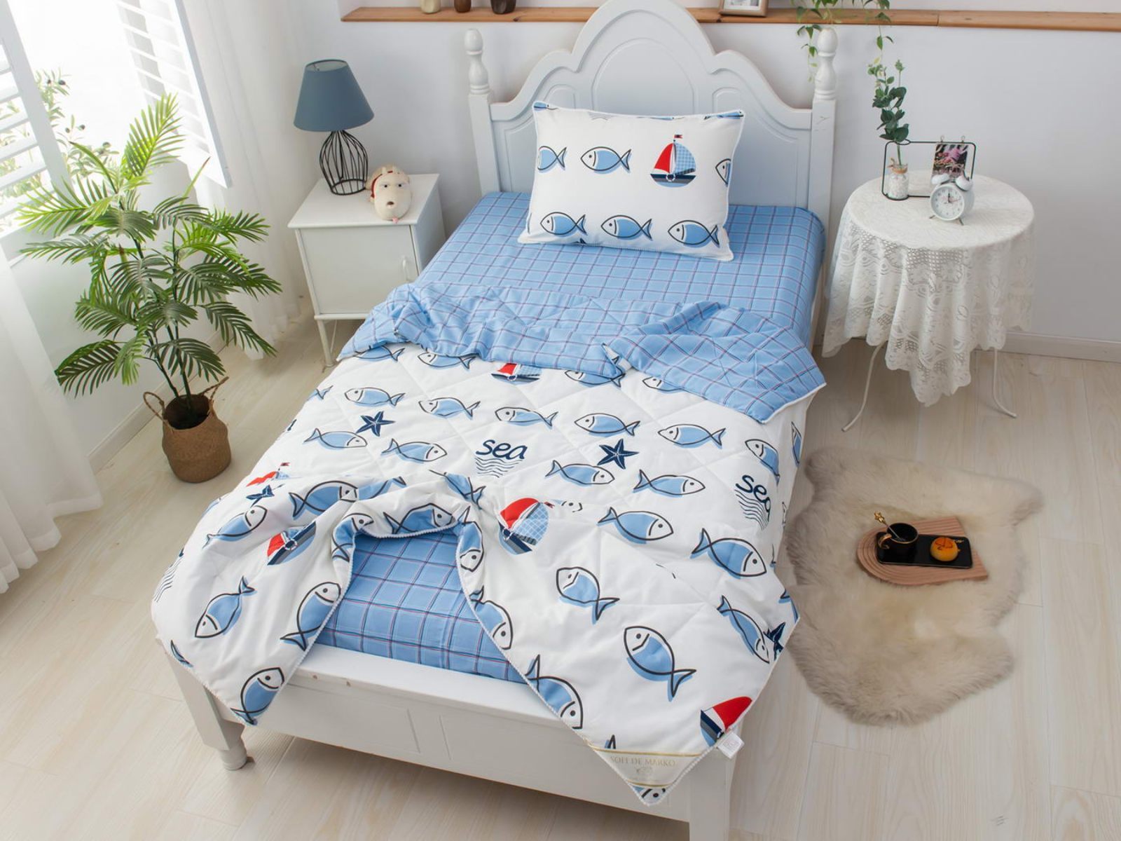 Интернет-магазин СОН.РУ предлагает купить постельное белье с доставкой по Чебоксарам . Комплект постельного белья Софи де Марко Морские рыбки с одеялом 1,5-спальный размера 1,5-спальный стоит 15 120 ₽ . На товар действует скидка в размере %. Если у вас есть вопросы по гарантии, доставке и оплате, задавайте их менеджерам нашего кол-центра по телефону: 8 800 333-65-91 .