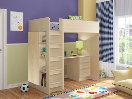 Кровать-чердак Теремок-3 представляет собой самодостаточный комплекс включающий в себя зону для сна, шкаф и полноценный рабочий стол. Прочная конструкция рассчитана на детей от 3 до 16 лет. Такая детская обеспечит разумную экономию пространства в вашем доме и полностью обеспечит выполнение всех многообразных функций детской и подростковой комнаты. Детская является универсальной, т.к. направление детской определяется при сборке.