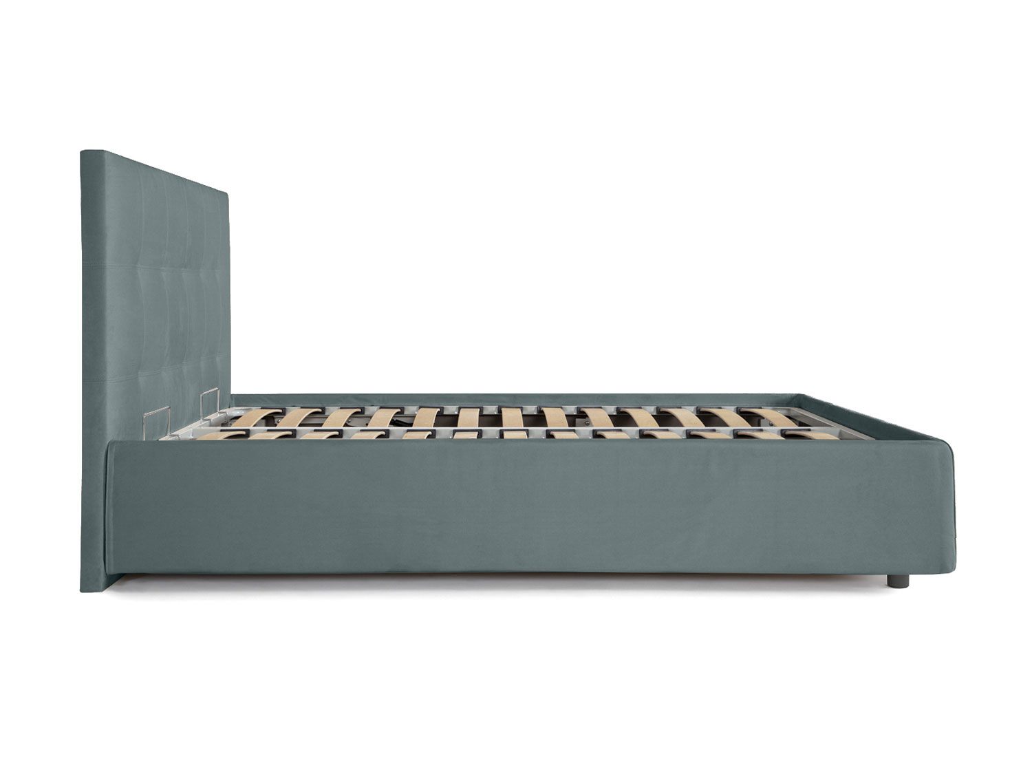 Кровать оснащена основанием с ламелями и подъемным механизмом. Рекомендуемая высота матраса до 27 см, вес матраса до 50 кг.