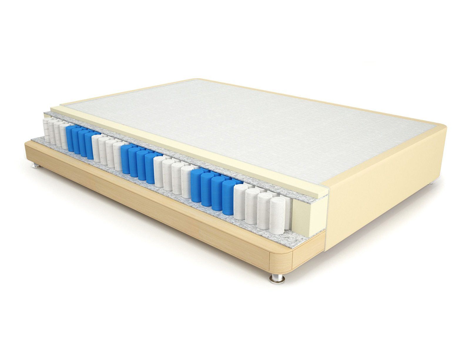Очень стильный кроватный бокс спринг, который подойдет для тех, кому важен ортопедический эффект не только в матрасах. В основании box spring встроены пружины, что усиливает анатомический эффект матраса. Высота пружин 14 сантиметров, которые покрываются сверху двумя сантиметрами пенополиуретана.
