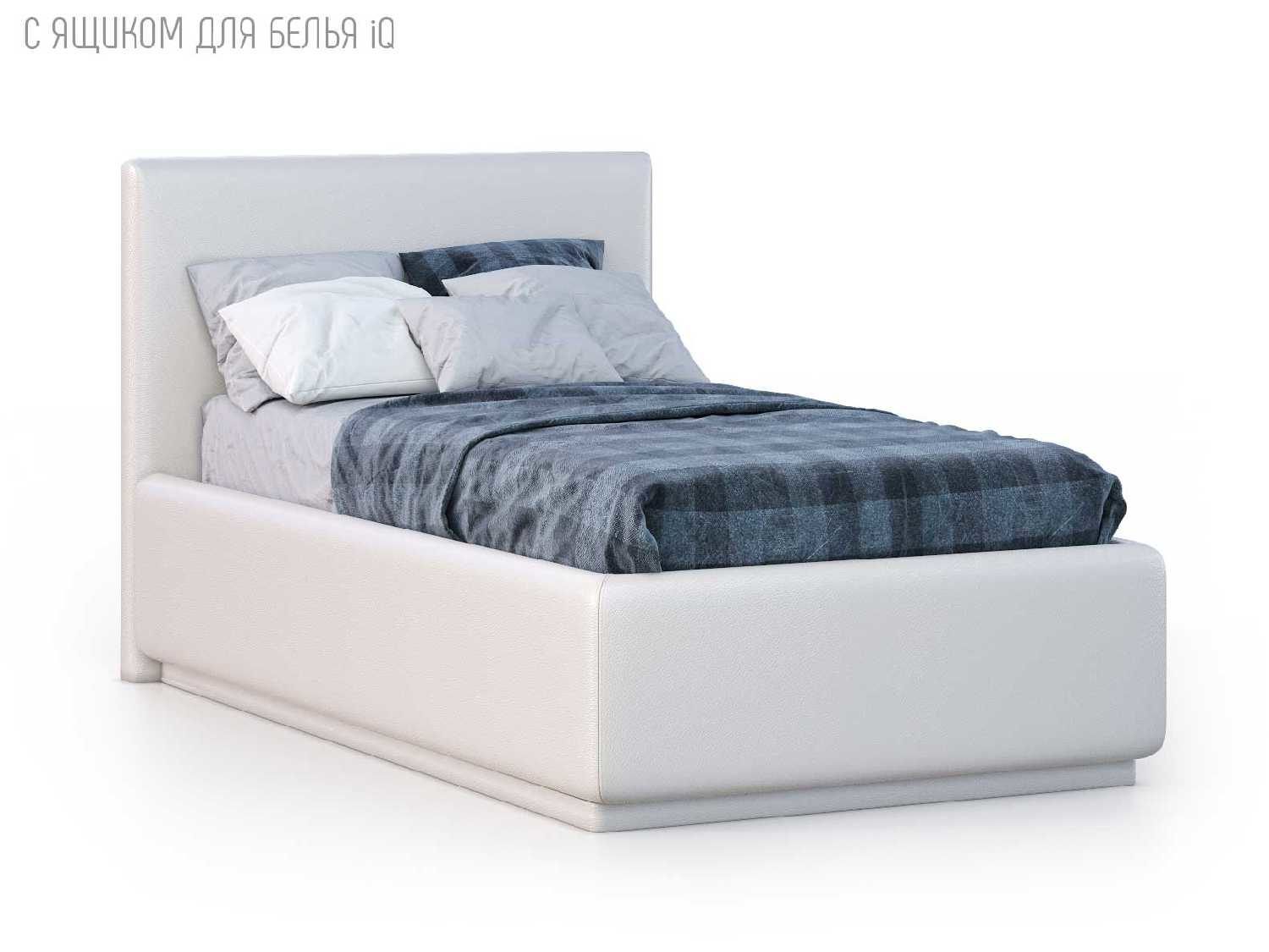 Кровать укомплектована IQ с подъемным механизмом и ящиком для белья без дна (дополнительная платная опция - дно к ящику IQ из HDF (ХДФ). Каркас кровати на цоколе, декоративный чехол на цоколе съёмный. Глубина ящика для белья - 30 см, без ограничения нагрузки на ящик.