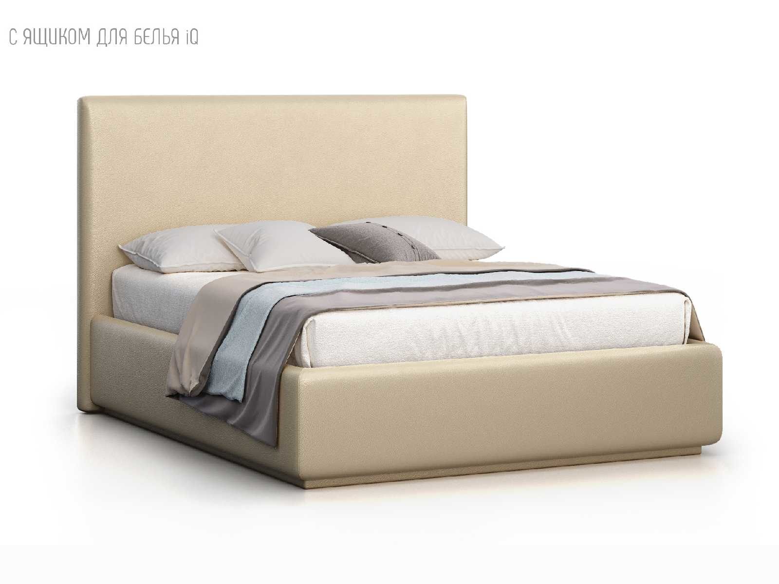 Кровать укомплектована IQ с подъемным механизмом и ящиком для белья без дна (дополнительная платная опция - дно к ящику IQ из HDF (ХДФ). Каркас кровати на цоколе, декоративный чехол на цоколе съёмный. Глубина ящика для белья - 30 см, без ограничения нагрузки на ящик.