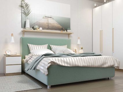 Кровать укомплектована ортопедическим основанием на ножках с березовыми ламелями (расстояние между ламелями 7.8 см).