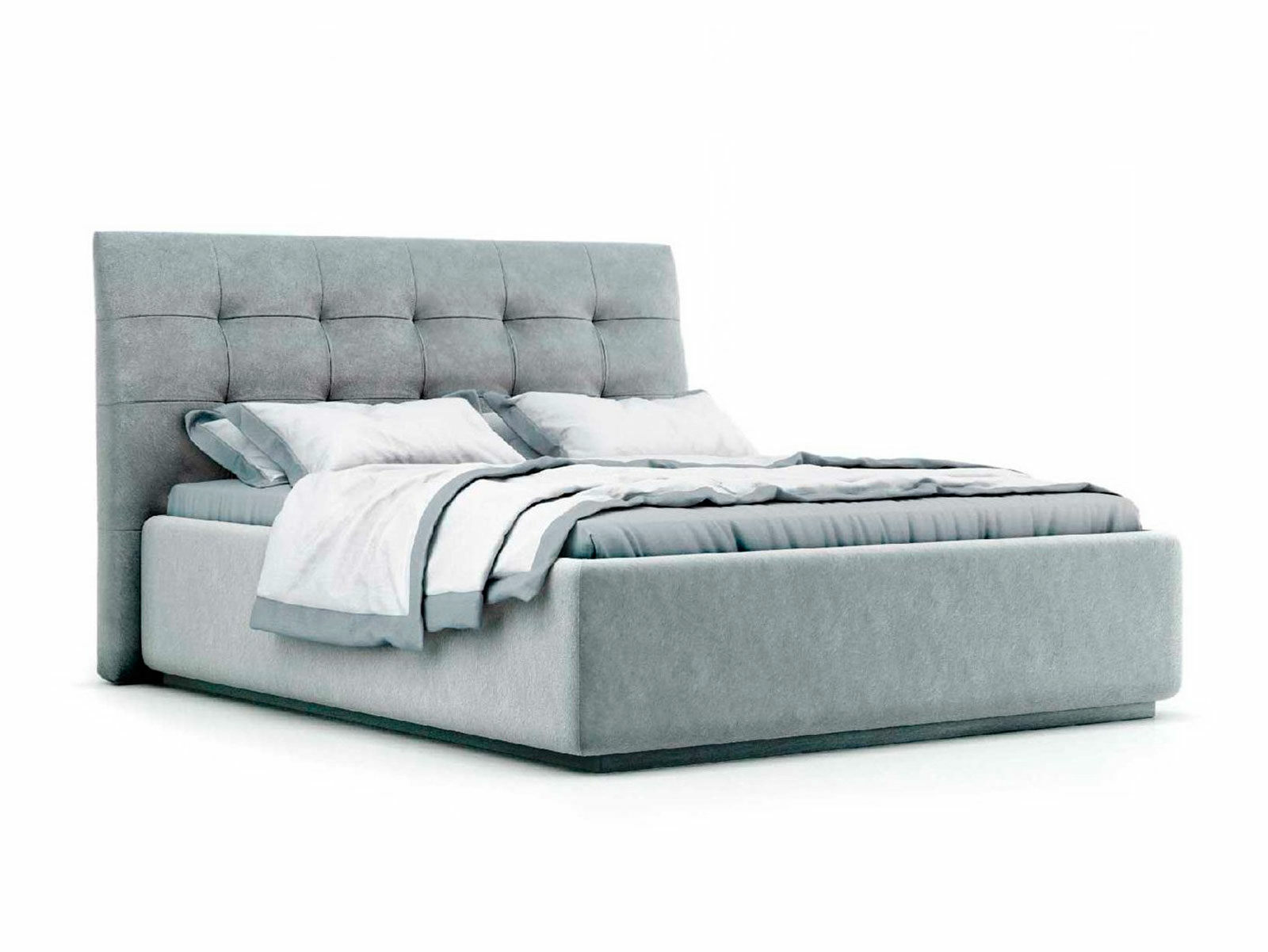 Кровать укомплектована IQ с подъемным механизмом и ящиком для белья без дна (дополнительная платная опция - дно к ящику IQ из HDF (ХДФ). Каркас кровати на цоколе, декоративный чехол на цоколе съёмный. Глубина ящика для белья - 30 см, без ограничения нагрузки на ящик.