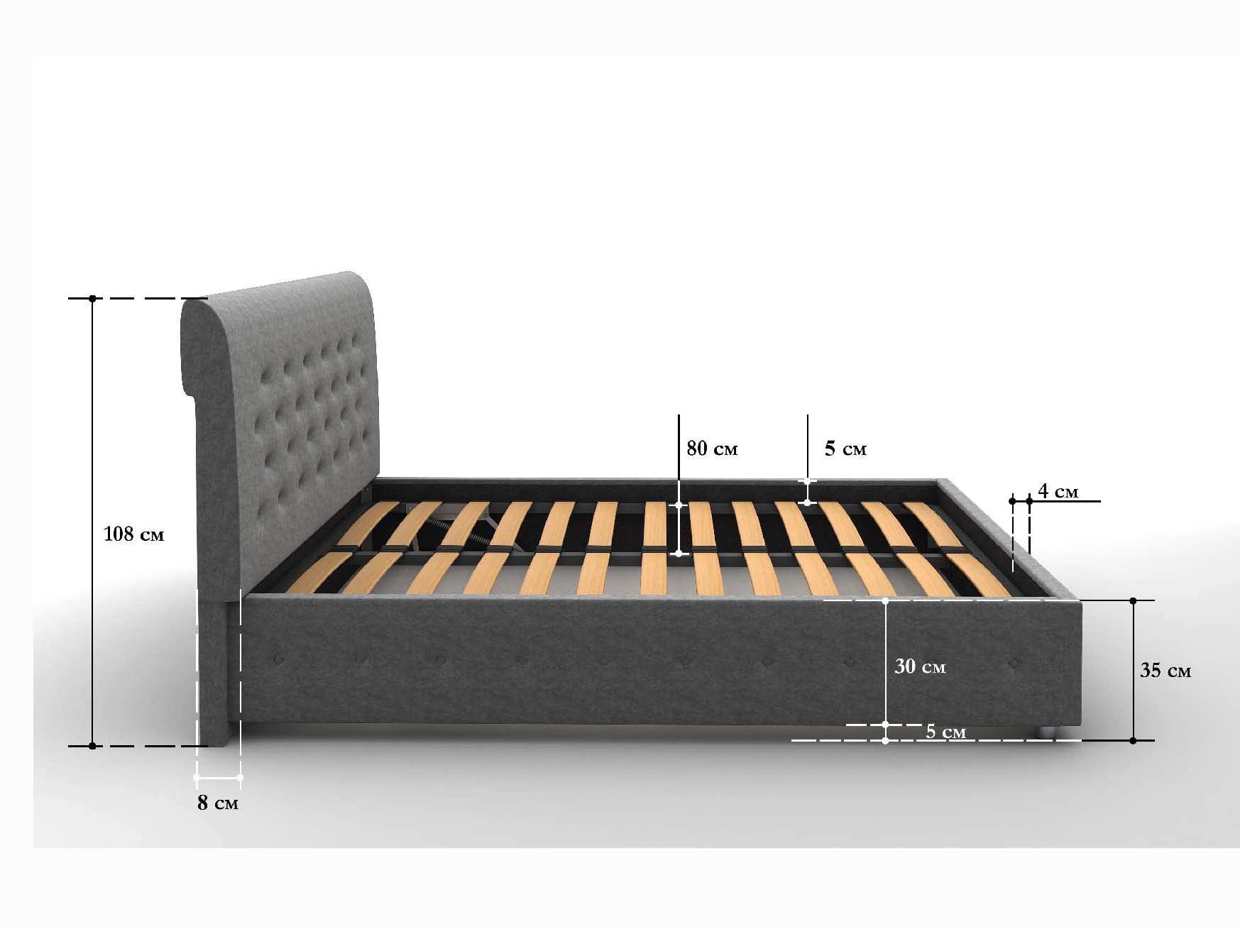 Кровать оснащена подъёмным механизмом. В такой вариации основание поднимается и открывает доступ к ящику для хранения белья и других вещей. Такая система может заменить небольшой шкаф и решить вопрос с организацией пространства.