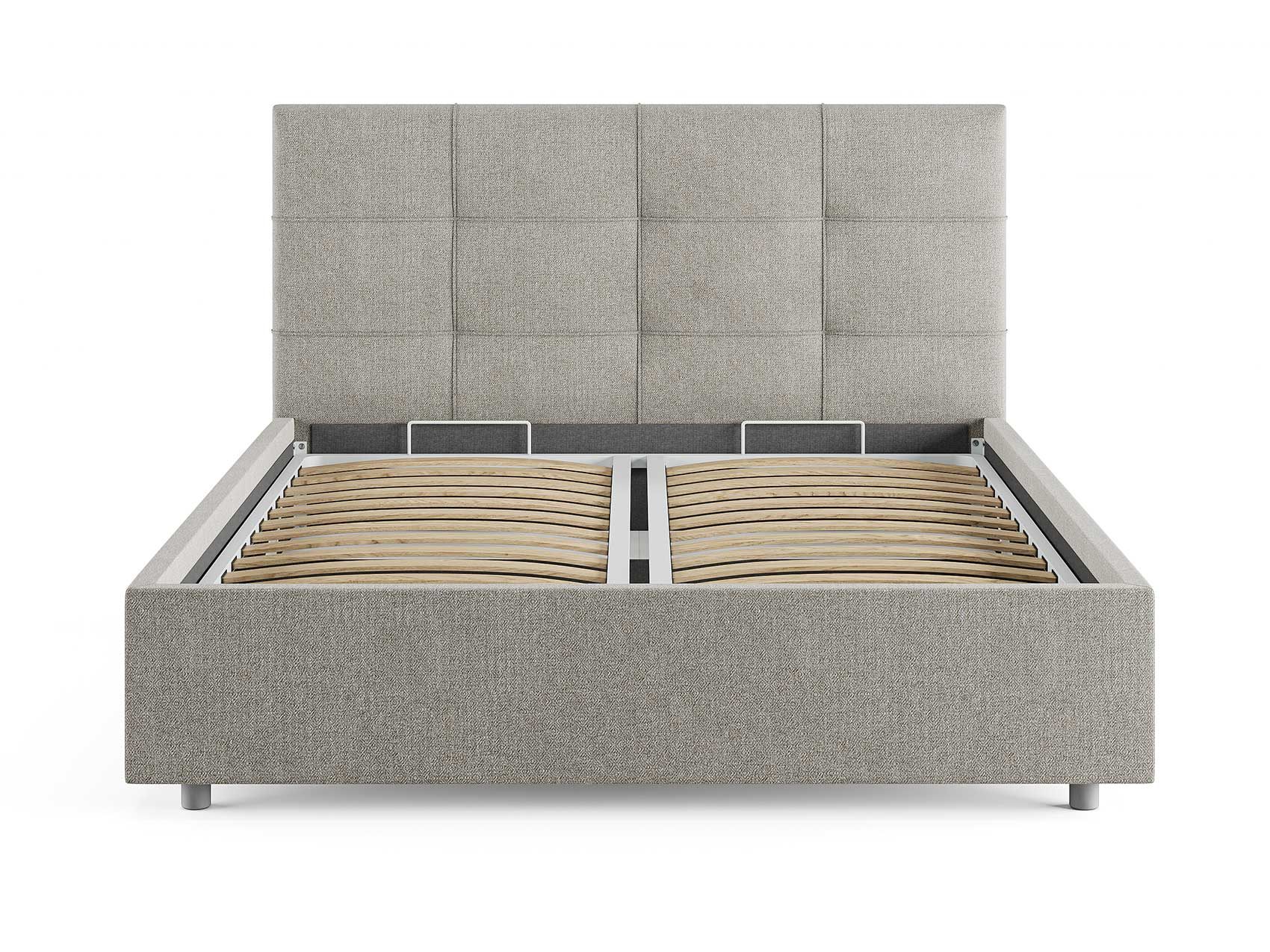 Кровать комплектуется металлическим основанием и подъемным механизмом со вместительным бельевым ящиком. Дно бельевого ящика легко сдвигается для обеспечения уборки под кроватью.