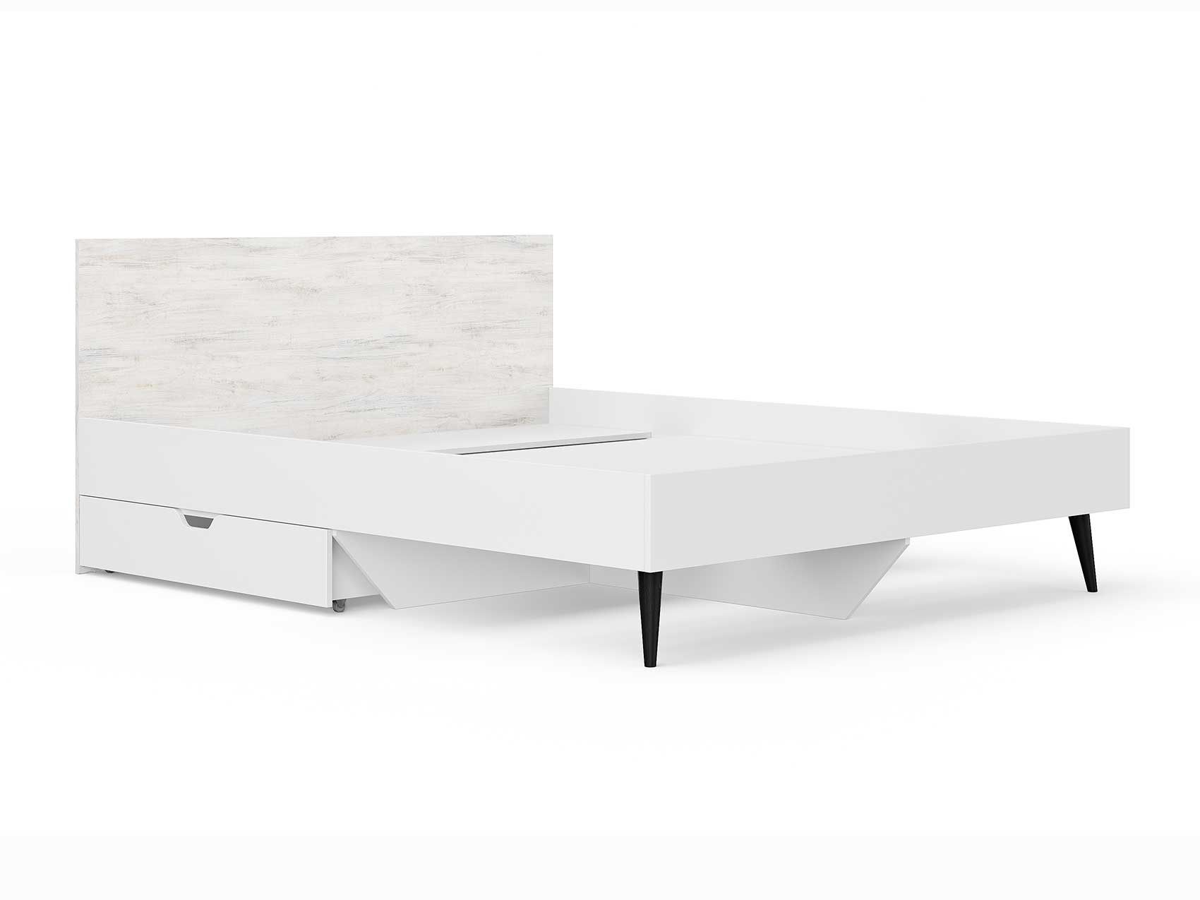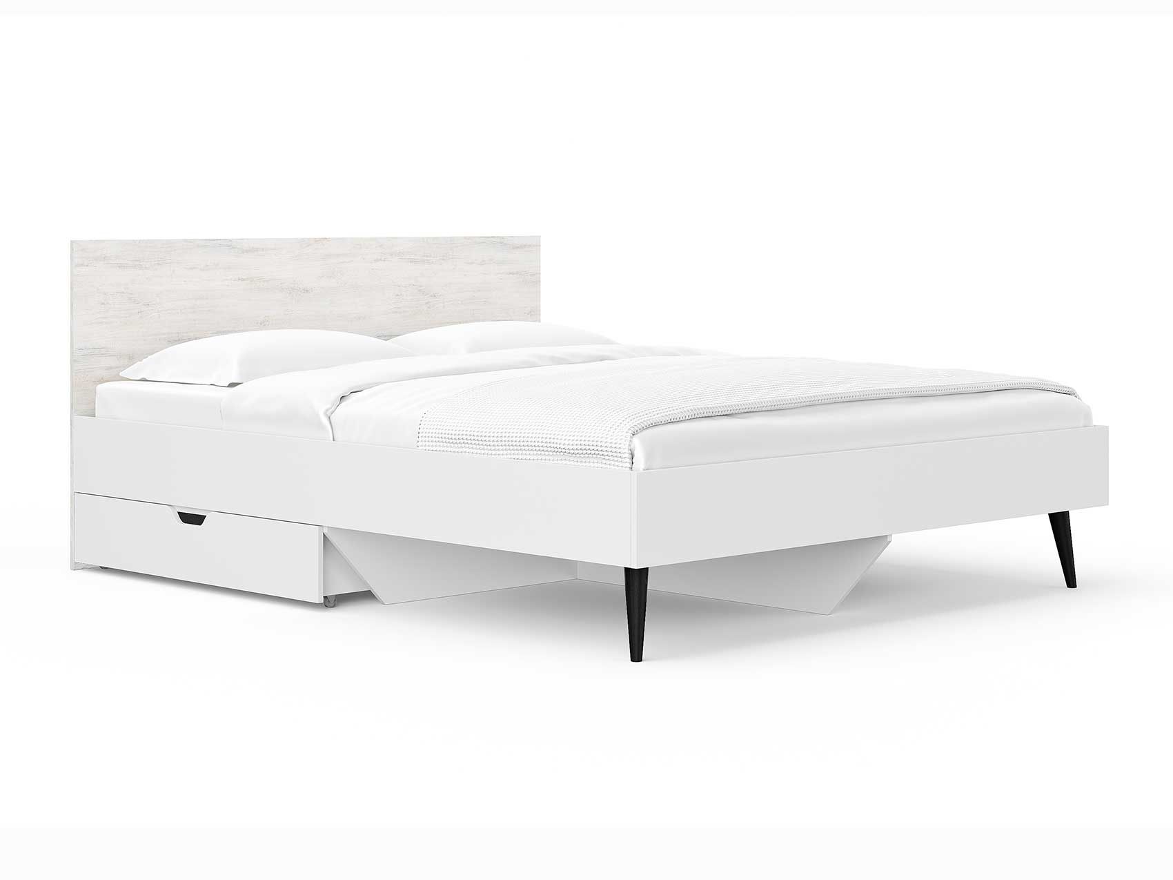 Кровать Ines оригинальное решение для спальни в скандинавском стиле. Благодаря деревянным ножкам кровать смотрится легкой и воздушной. В качестве основания используется настил из ЛДСП. Система усиленных средней и центральной царг позволяют выдерживать высокие нагрузки. Большое расстояние от пола до царги облегчает уборку под кроватью, делает доступной использование робота-пылесоса. Кровать можно укомплектовать ящиками для хранения вещей (приобретаются отдельно).
