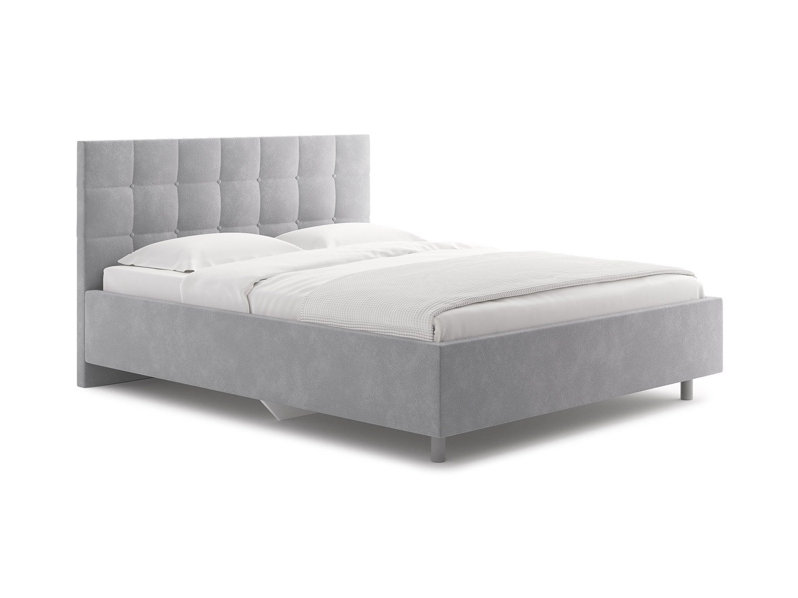 Элегантная интерьерная кровать с изголовьем, украшенным декоративными пуговицами, которые можно заменить на стразы. Модель изготовлена из ДСП.