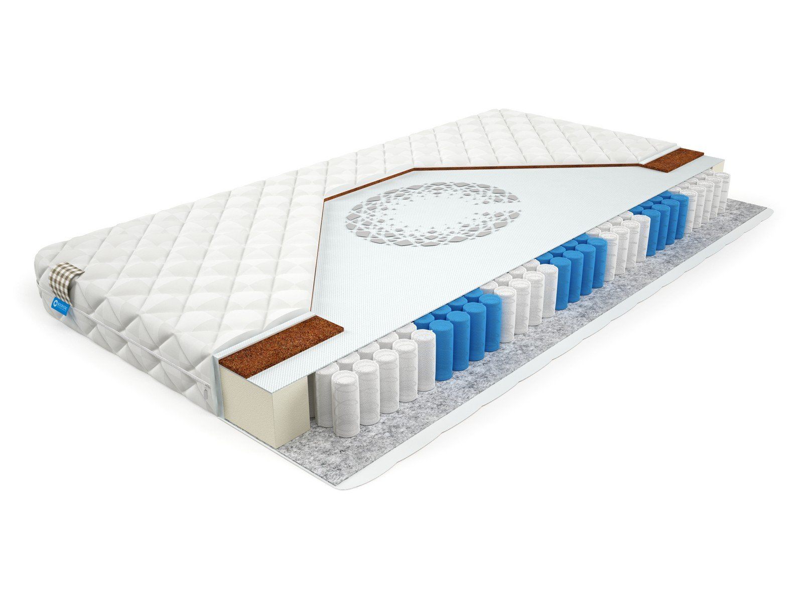 Матрас BioCrystal Victor - простой недорогой матрас средней жесткости. Матрас c ортопедическим эффектом на основе семи-зонного пружинного долговечного блока независимых пружин SIlverSpringPocket 7 zone. Данный блок насчитывает 580 металлических пружин на одно спальное место, это оптимальное количество пружин для бюджетного матраса. 7-зональный пружинный блок SSP 580 значительно прочнее обычного блока независимых пружин, и имеет большее количество витков, что, в свою очередь, лучше сказывается на упругости матраса и качестве сна. Матрас насчитывает семь зон жесткости и правильно повторяет изгибы позвоночника во время сна или отдыха. Одна сторона матраса - средней жесткости, которою ему придает 1 сантиметр латексированного кокосового волокна.