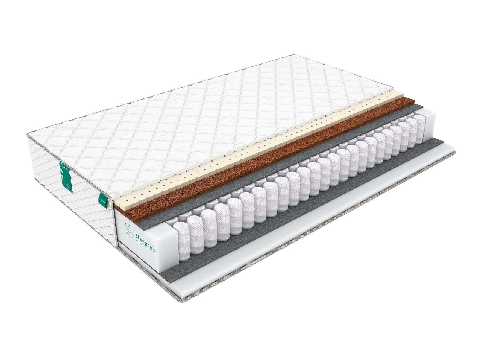 С одной стороны в качестве наполнителей использованы натуральный латекс и койра кокоса. Латекс перфорирован, что улучшает вентиляцию. Латекс придает этой стороне комфорт и мягкость, а койра усиливает ортопедические свойства пружинного блока. Оба наполнителя гигиеничны, не впитывают влагу и посторонние запахи, обладают долгим сроком службы.