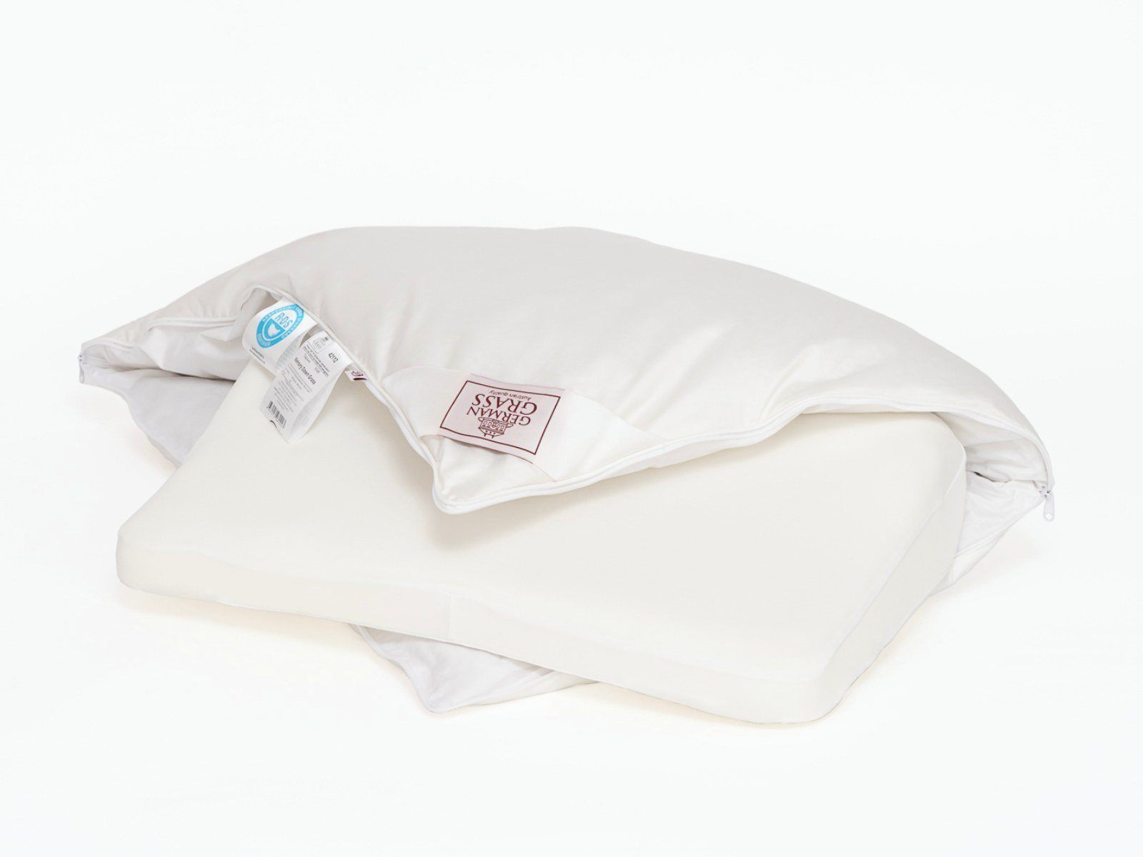 Съемный чехол на молнии с наполнителем из нежного гусиного пуха. Отобранный вручную, нежный пух подарит Вам особенно комфортный сон, сохраняя важные для здоровья ортопедические свойства подушки.