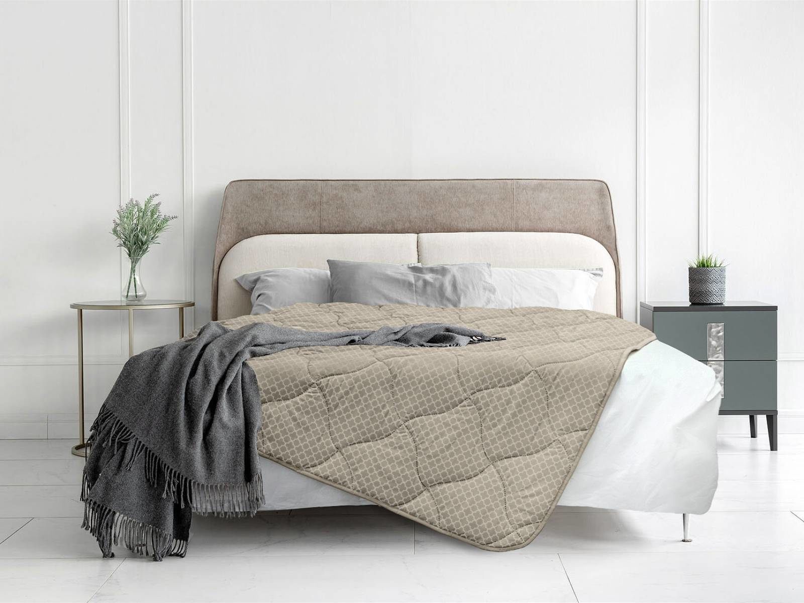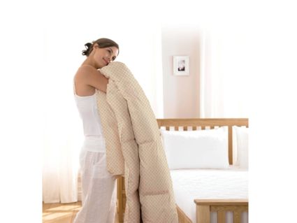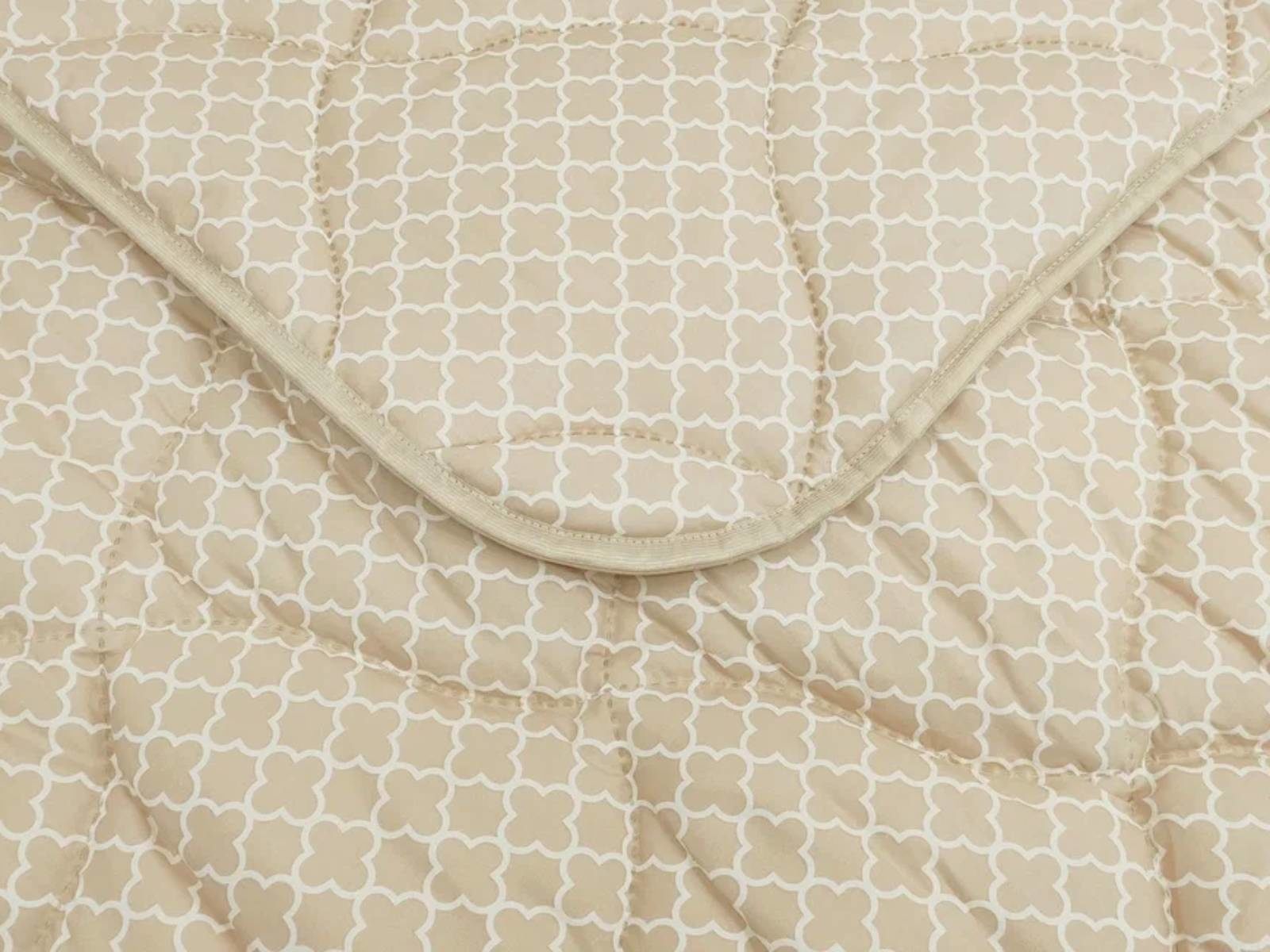 Чехол одеяла выполнен в спокойном бежевом оттенке с ненавязчивым геометрическим орнаментом. Ткань чехла обладает хорошей воздухопроницаемостью, отличается высокой прочностью и долговечностью. Уникальная технология безниточного скрепления Ультрастептм не только надежно фиксирует наполнитель внутри чехла, но и добавляет изделию объем.