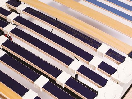 Ламели решетки выполнены из бука. Размер профиля 70x25 мм. Высота ног 30 см. Для обработки используются натуральные краски на пчелином воске.