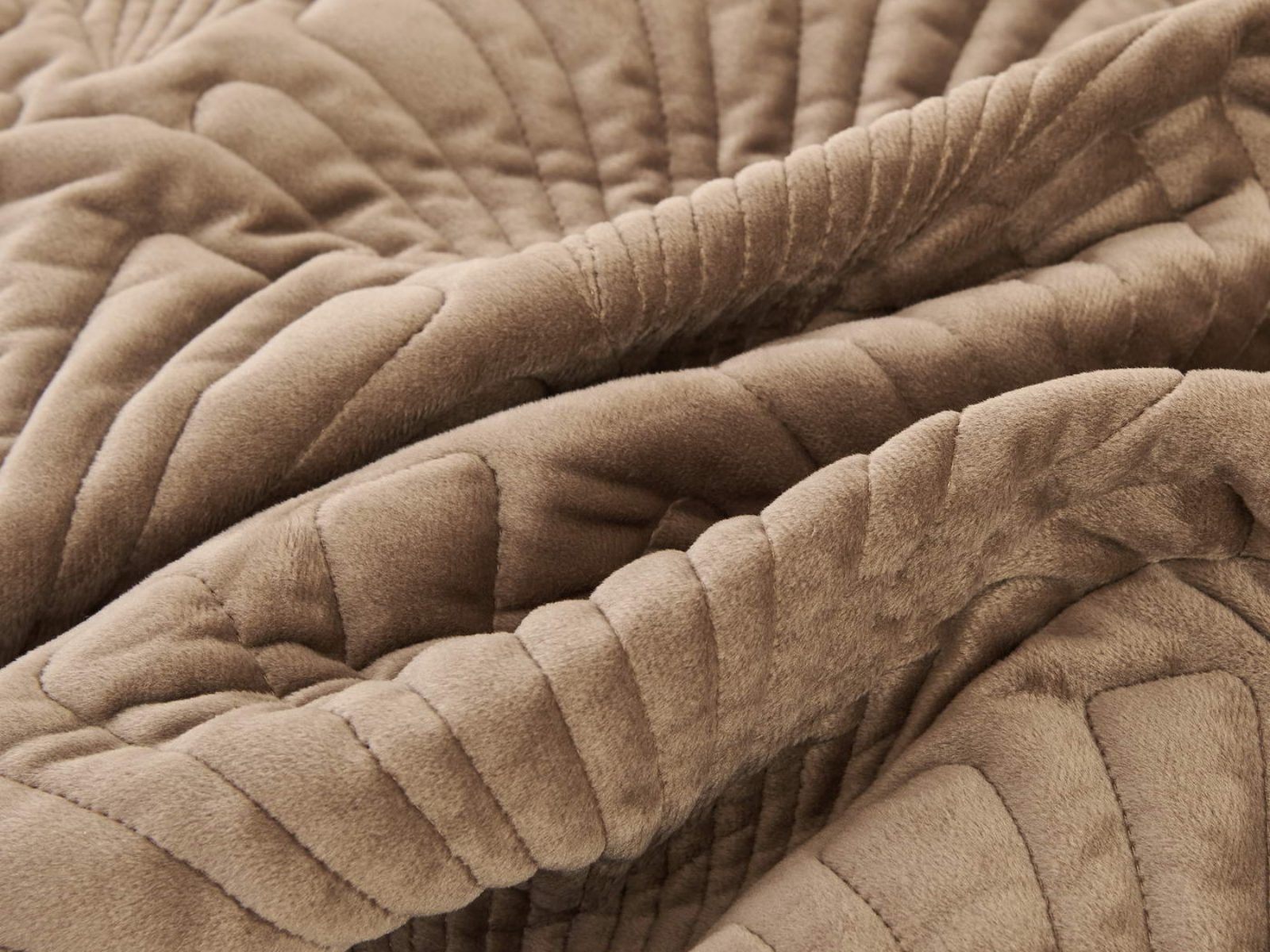 Роскошное велюровое покрывало Ариэль станет изюминкой любого интерьера, ведь оно потрясающе выглядит и приятное на ощупь. Обратите внимание на стежку покрывала – она выполнена в виде ракушек с эффектом 3D. Из-за особого плетения, велюровая ткань покрывала отражает свет и красиво переливается при различном освещении.