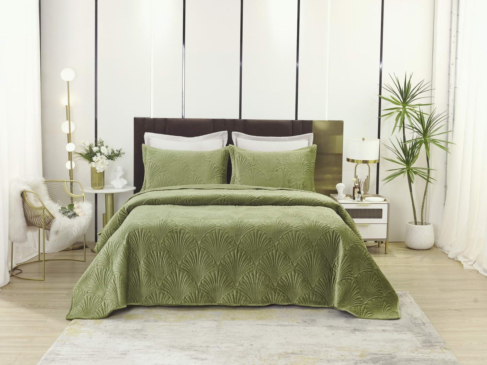 Роскошное велюровое покрывало Ариэль станет изюминкой любого интерьера, ведь оно потрясающе выглядит и приятное на ощупь. Обратите внимание на стежку покрывала – она выполнена в виде ракушек с эффектом 3D. Из-за особого плетения, велюровая ткань покрывала отражает свет и красиво переливается при различном освещении.