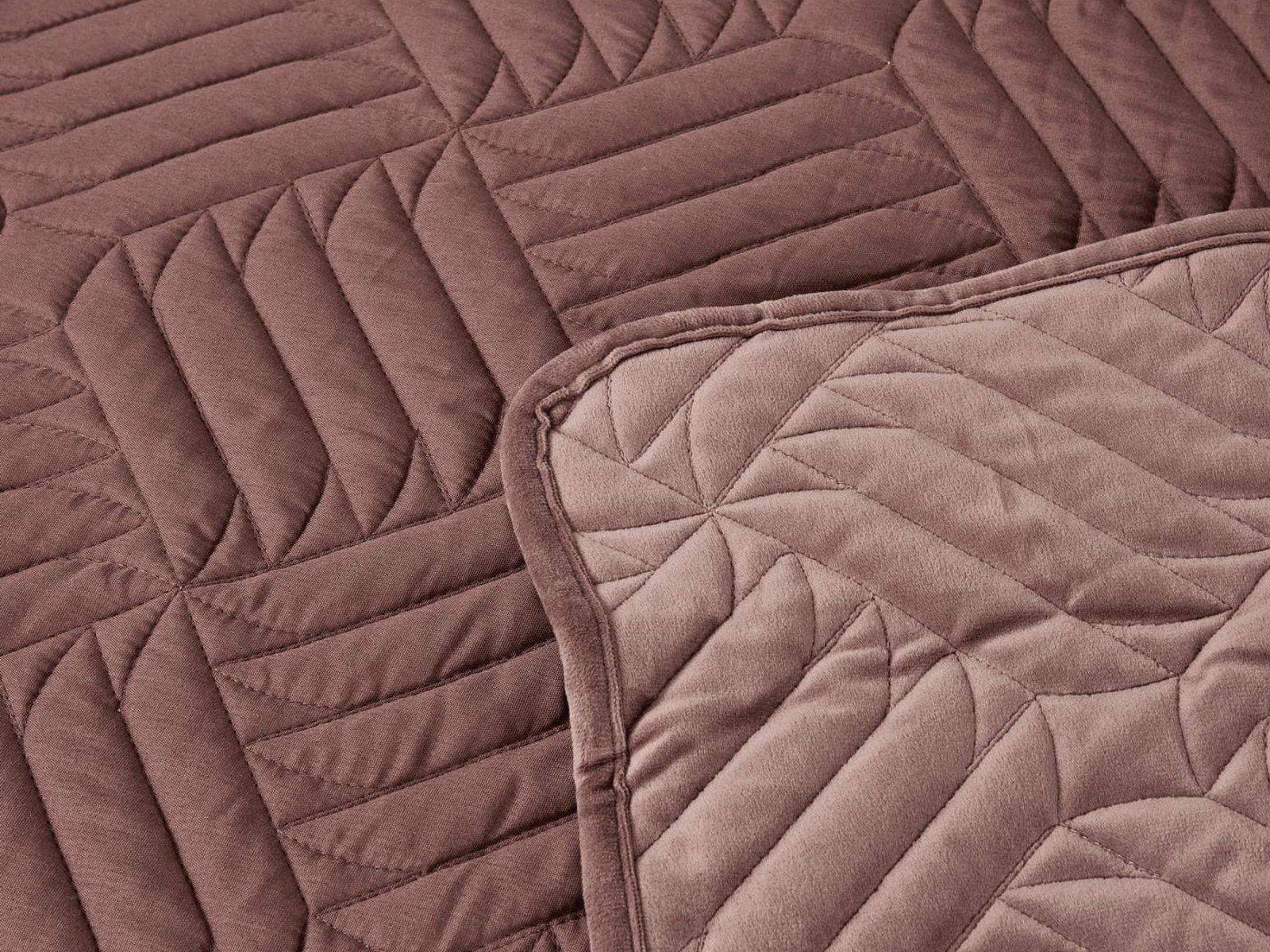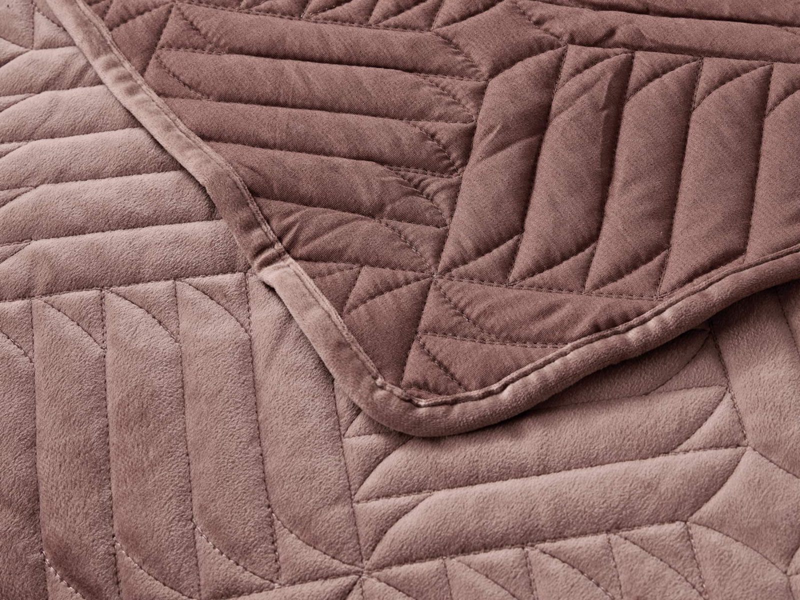 Покрывала выполнены в 10 оттенках: крем, мокко, пепельный, песочный, светло-бежевый, светло-серый, серый, темно-серый, чайная роза и черный. Стежка в виде геометрического орнамента подойдет к любому современному интерьеру. Из-за особого плетения, велюровая ткань покрывала отражает свет и красиво переливается при различном освещении.