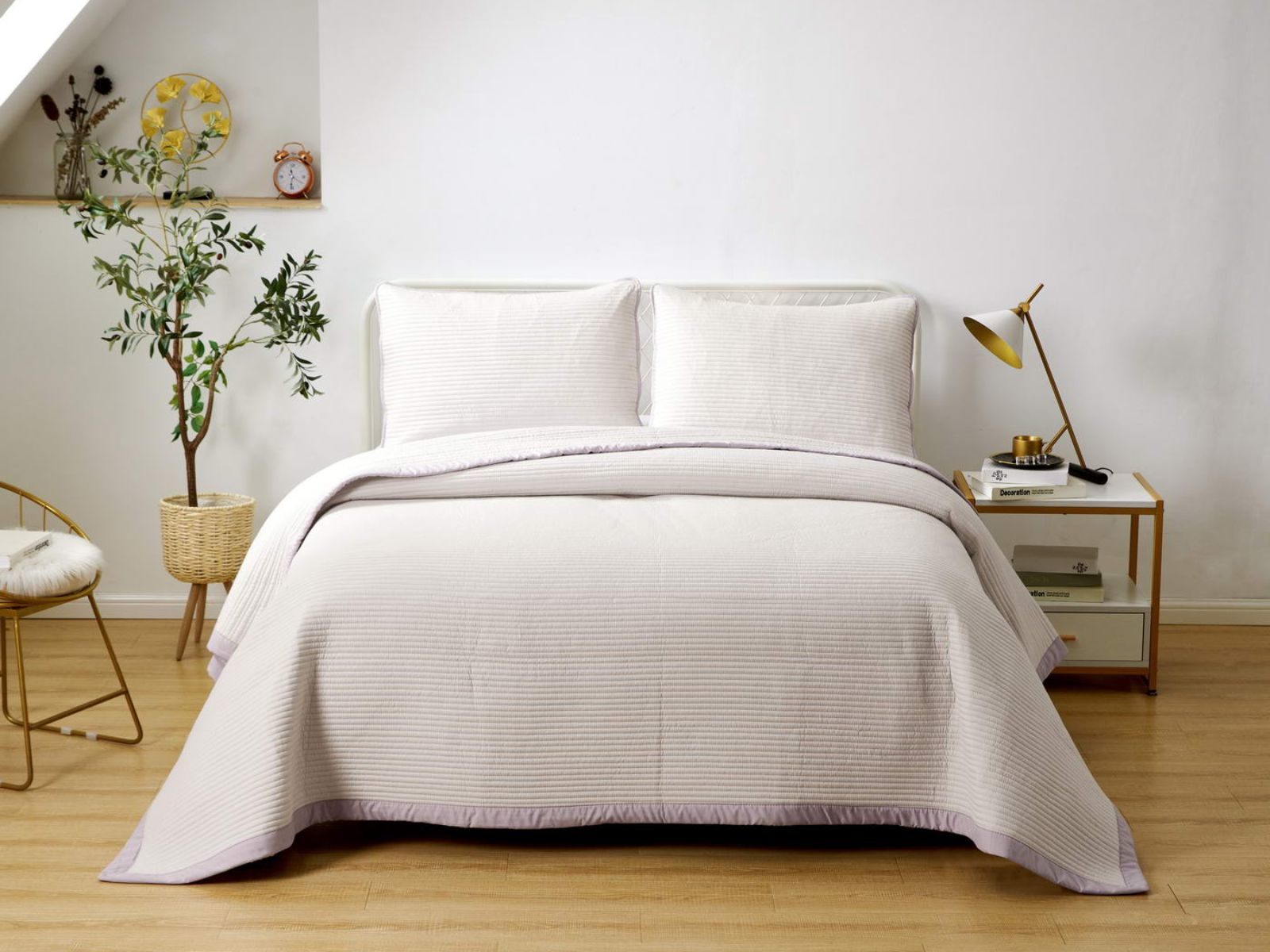 Легкое, стеганое и очень красивое покрывало с контрастной окантовкой обязательно украсит вашу комнату. Покрывало изготовлено из смеси хлопка и вискозы, поэтому оно легкое, но очень прочное. При правильном уходе за покрывалом Марисоль, оно прослужит долгое время, не полиняет и не потеряет форму.