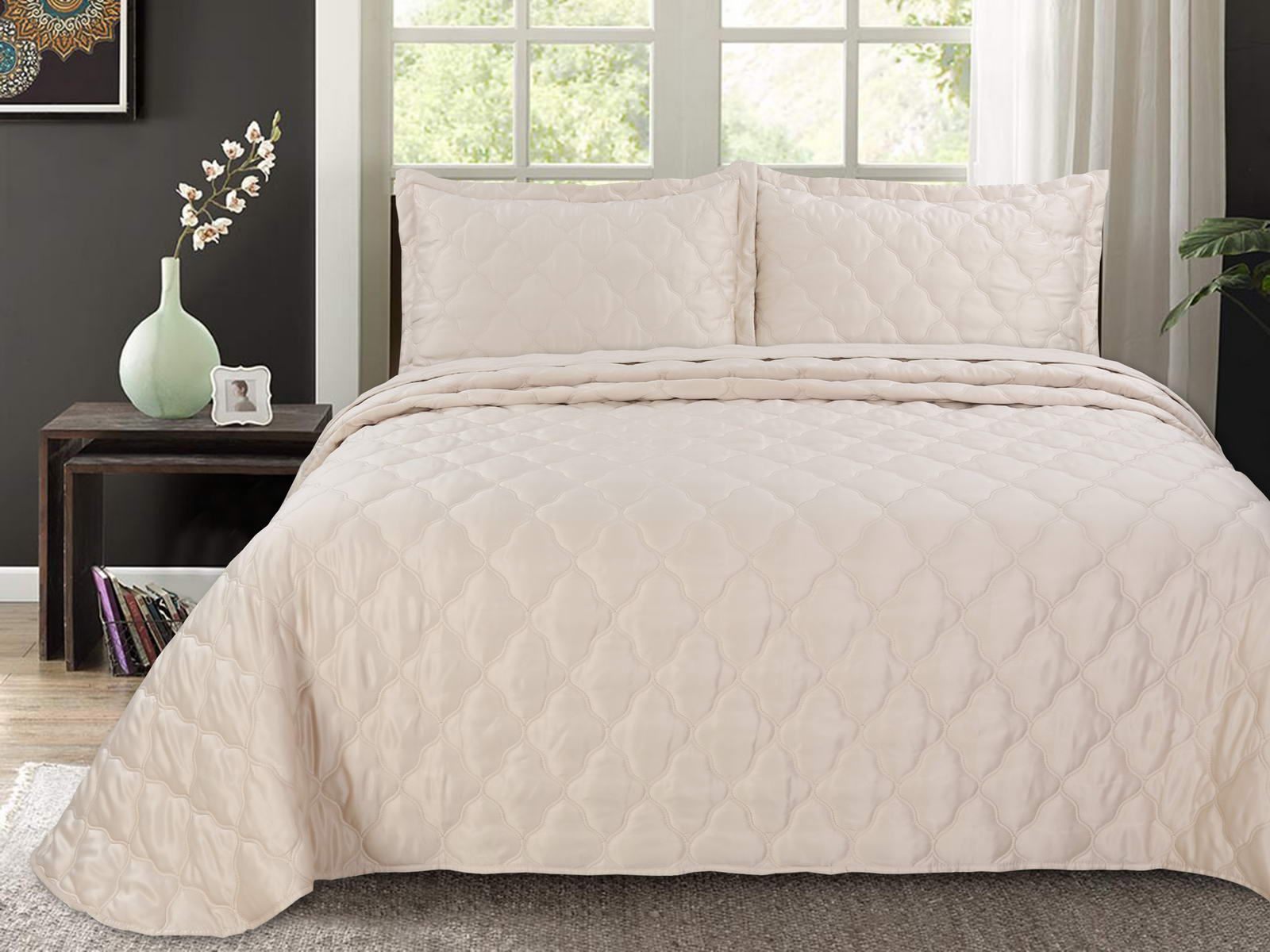 В комплект входят покрывало и одна либо две наволочки (50х70 см) из аналогичного материала в зависимости от размера.