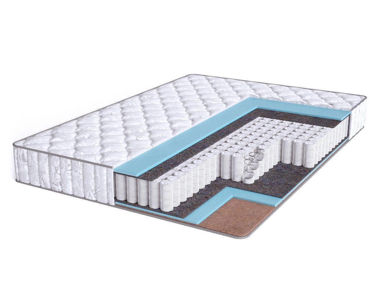 Матрас Promo 5 S600 выполнен на основе блока независимых пружин "Покет", обеспечивающего деликатную ортопедическую поддержку тела спящего, гипоаллергенного ППУ и эко-кокоса (смесь натуральных кокосовых волокон со струттофайбером). Данный матрас благодаря несимметричной конструкции обладает разной жёсткостью сторон, что позволит Вам самостоятельно подобрать для себя оптимальную по комфорту степень жёсткости. Для усиления прочности конструкции с каждой стороны от пружинного блока имеется металлическая рамка (по всему периметру матраса).