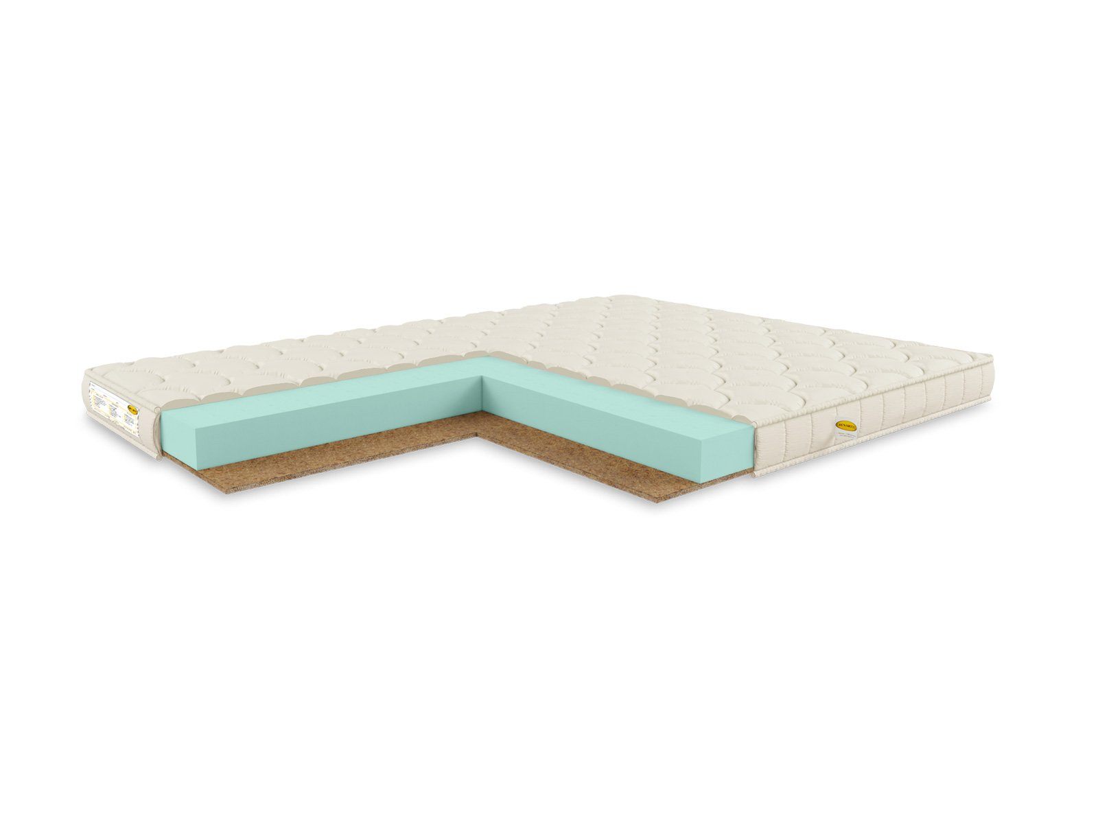 Внутреннее наполнение матраса представлено такими материалами как природная кокосовая койра и блок искусственного латекса. Вместе они дают высоту модели равную 10 см и легко выдерживают нагрузку до 100 кг на спальное место.