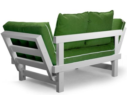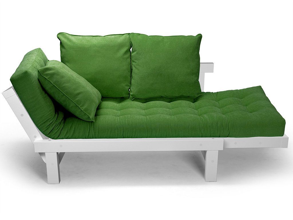 Каркас кушетки изготавливается из натуральных материалов (массив сосны). В комплекте с каркасом идут матрас, две приспинные подушки. Откидные подлокотники имеют два положения, что позволяет с удобством, разместится двум человекам.