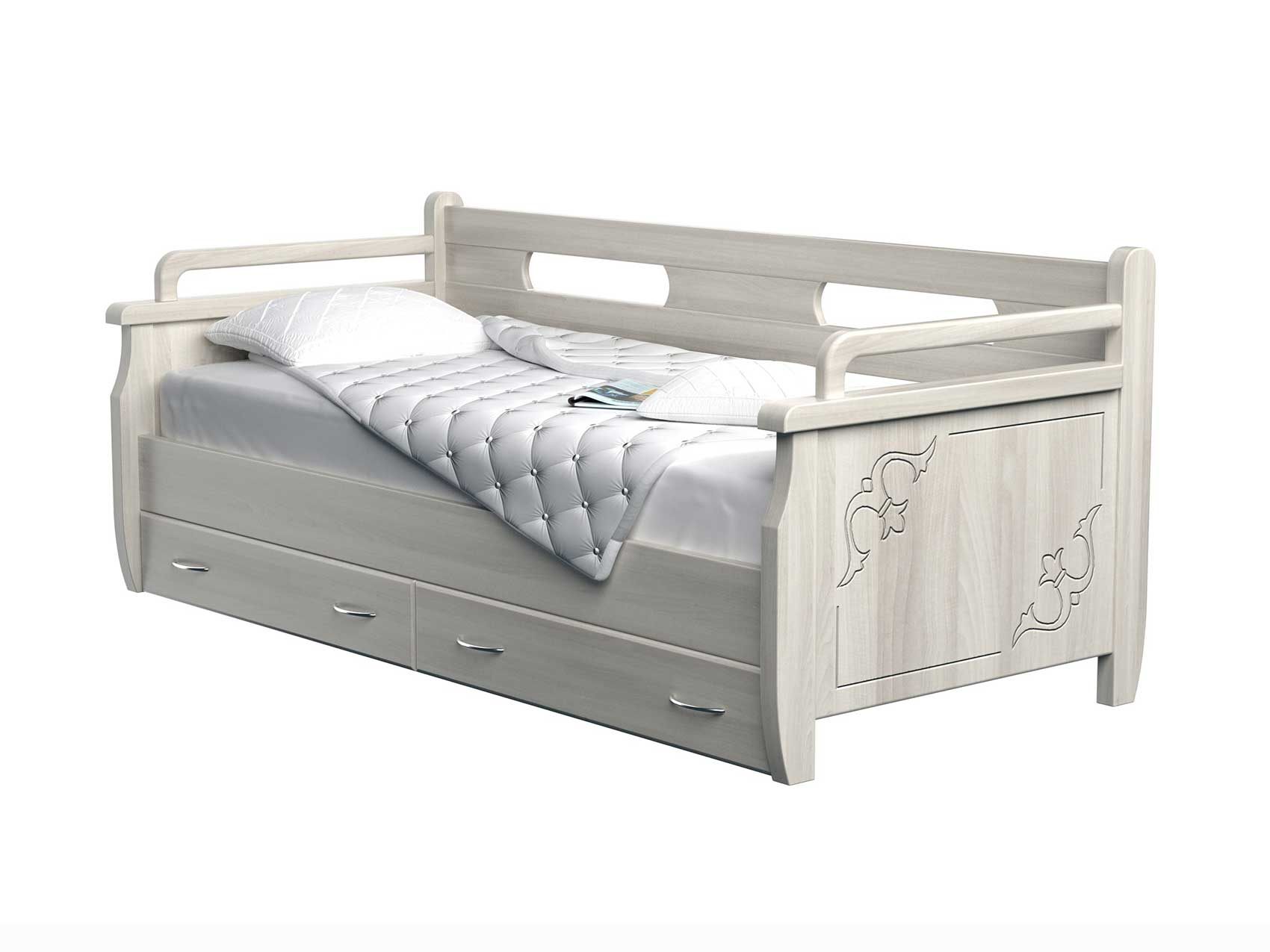 Живая классика для Вашего интерьера. Как и у всех моделей кроватей практичность и универсальность кровати, возможность комплектования как выкатными ящиками, так и ящиком для белья из массива или ЛДСП с подъемным механизмом фронтального или бокового открытия являются неоспоримыми преимуществами этой модели. Стандартно не комплектуется выкатными ящиками, ящики заказываются и оплачиваются отдельно. Задняя спинка — 85 см., боковые поручни — 75 см.