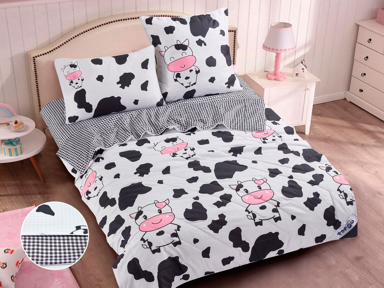 В данный комплект вместо пододеяльника входит облегченное одеяло. Комплект подойдет тем, кто устал от мучительного натягивания пододеяльников на одеяло.